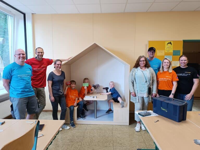 Arnsberg/Neheim. Große Freude und Aufregung herrschte kürzlich bei den Kindern der Grundschule Müggenberg-Rusch: In der Mensa der Schule steht nun ein ganz besonderes Möbelstück – ein liebevoll gestaltetes Mini-Häuschen mit