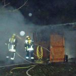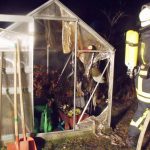 Beim Eintreffen der ersten Einsatzkräfte der alarmierten Hauptwachen Neheim und Arnsberg sowie des Basislöschzugs 1 mit den Einheiten aus Voßwinkel und Neheim brannte der Holzschuppen bereits in voller Ausdehnung, so dass sofort mehrere Trupps unter Atemschutz mit mehreren C‑Rohren dem Feuer zu Leibe rückten. Weitere Einsatzkräfte brachten parallel dazu diverse Gartengeräte aus dem Unterstand in Sicherheit. Ein Gewächshaus neben dem Schuppen wurde durch die Wärmeeinwirkung ebenfalls beschädigt. Nachdem der Brand gelöscht war, musste im Schuppen ein Holzstapel auseinander gezogen werden, um verbliebene Brandnester ablöschen zu können. Hierbei wurde das Objekt immer wieder mit der Wärmebildkamera kontrolliert. Zur Sicherung der Einsatzstelle verblieb noch eine Brandsicherheitswache am Brandort. Für die letzten der rund 35 eingesetzten Rettungskräfte war der Einsatz schließlich um 2 Uhr beendet.