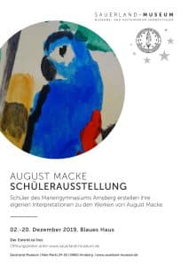 Seit einigen Wochen beschäftigen sich Schüler der Jahrgangstufen 6, 8, 10 und 12 intensiv mit dem Leben und Werk des in Meschede geborenen Künstlers. Im Rahmen ihres Kunstunterrichts haben sie natürlich auch die Ausstellung „August Macke – ganz nah“ mit ihren Fachlehrerinnen und Fachlehrern im Sauerland-Museum besucht. Mit diesen Eindrücken und Kenntnissen haben sie sich selbst ans Werk gemacht und mit Mackes Formen und Farben eigene Interpretationen geschaffen. Eine Auswahl der Ergebnisse werden nun im Blauen Haus des Sauerland-Museums ausgestellt. Der Eintritt zur Schülerausstellung ist frei, die Öffnungszeiten sind auf der Homepage des Museums zu finden: www.sauerland-museum.de