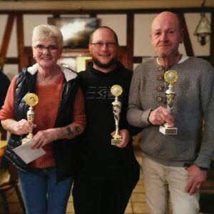 Die Spannung im Finale war kaum zu überbieten, als das Turnier in die entscheidende Phase überging. Die Plätze 6 bis 4 gingen an Dirk Scharfe, Wolfgang Baader und Stephanie Goor. Die ersten drei Plätze wurden von den Teilnehmern belegt, die bereits in der Vorrunde an Tisch 4 aufeinandergestoßen waren. Kathrin Stiller sicherte sich den 3. Platz, während ihr Bruder Dieter Grzmehle den 2. Platz belegte. Der erste Platz und damit der Sieg ging an Jens Schmidt.