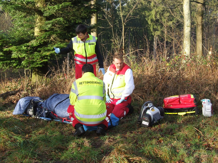 Da in der Zwi­schen­zeit unklar war, ob der Ret­tungs­hub­schrau­ber die Ein­satz­stel­le anflie­gen kann, wur­de vom Lösch­zug Sun­dern eine spe­zi­el­le Schleif­korb­tra­ge zur Ein­satz­stel­le gebracht, mit der der Pati­ent gege­be­nen­falls den Wald­hang hät­te hin­un­ter trans­por­tiert wer­den kön­nen. Nach medi­zi­ni­sche Ver­sor­gung durch die Not­ärz­tin und das Ret­tungs­dienst­per­so­nal wur­de der Pati­ent schließ­lich von Ein­satz­kräf­ten der Feu­er­wehr zum von der Unfall­stel­le etwa 500 Meter ent­fern­ten Lan­de­platz getra­gen. Dort konn­te er zum Trans­port in eine Unfall­kli­nik nach Dort­mund an die Besat­zung des Ret­tungs­hub­schrau­bers über­ge­ben werden.