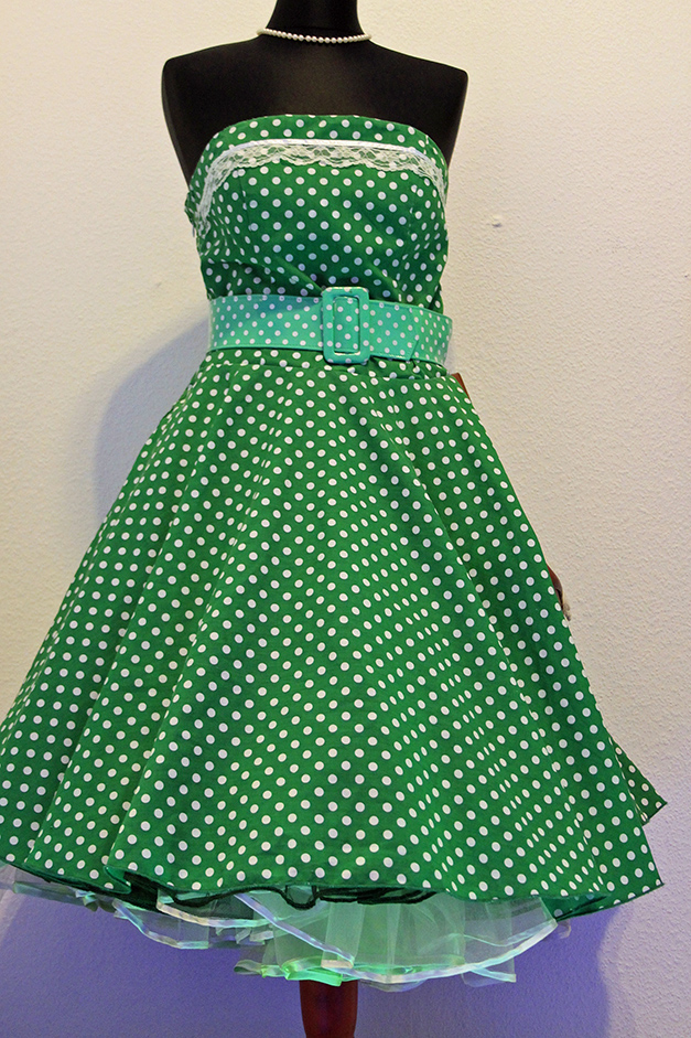 Der Petticoat ist ein bauschig weiter Unterrock aus versteiften Perlon- und Nylon-Stoffen mit rüschen- und spitzenverzierten Stufen, der in den 1950-er Jahren unter langen, weiten und taillenbetonten Röcken zu deren Formunterstützung getragen wurde. Er besteht meist aus einem Sattel und dem eigentlichen, darunter beginnenden breit ausfallenden Petticoat-Teil mit drei oder vier Stufen. Die Stoffverarbeitung von meist mehreren Lagen Tüll unterstützt die weite Auslegung dieses Kleidungsstücks. 1947 entwarf der französische Modeschöpfer Christian Dior die „Blütenkelchlinie“, die die Mode der 50-er und frühen 60-er Jahre stark beeinflusste. In dieser Zeit bestimmten weich abfallende Schultern, runde Hüften und extrem schmale Taillen das Bild der Damenmode. Das zu offiziellen Anlässen getragene taillierte Kostüm wurde je nach Saison entweder mit einem engen oder einem durch einen Petticoat gestützten weiten Rock getragen.