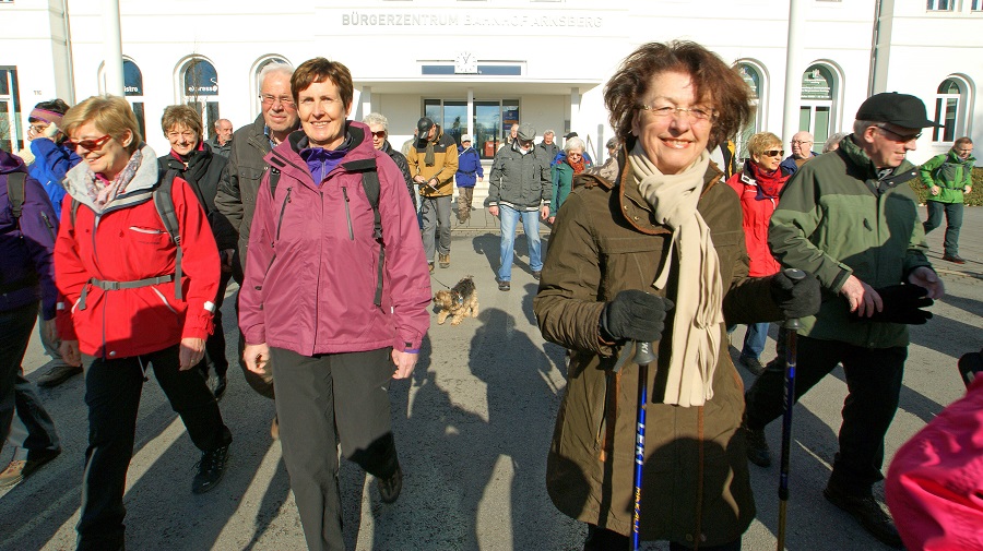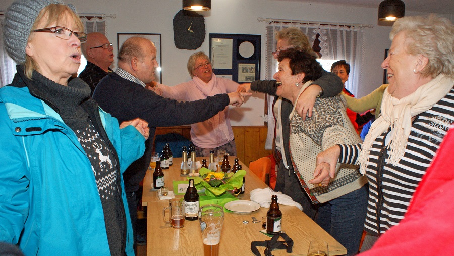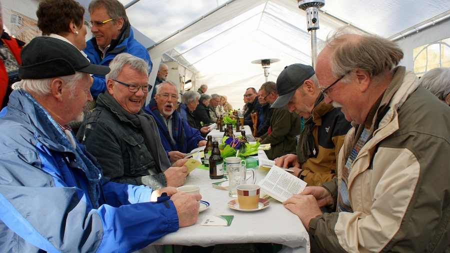 In Alt-Arnsberg ging es los. 86 wanderlustige SGVer trafen sich um 11 Uhr am Bahnhof. Von hier aus bewegte sich der Tross unter Leitung von Willy Verbanc, Wanderführer der SGV-Abteilung Arnsberg, in Richtung Oeventrop. Die Strecke war etwa zehn Kilometer lang und lief zunächst in Richtung Lüsenberg. Weiter ging es ins Ruhrtal, durch Rumbeck und endete in der SGV-Hütte in Oeventrop. Die Oeventroper Abteilung hatte die erste Einladung für diese Wanderaktion übernommen und sich mit einer starken Mannschaft bestens mit Speis und Trank, Musik und viel Engagement auf den Ansturm der Wanderer vorbereitet. Ihr Vereinsheim, wie auch das extra angebaute Partyzelt, waren gemütlich beheizt und komplett mit Tischen und Stühlen ausgestattet.