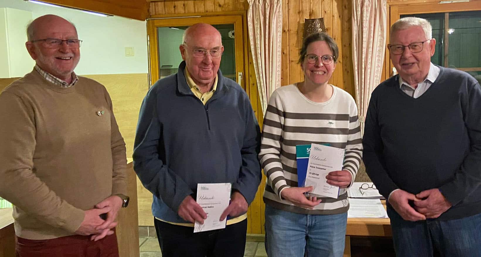 Für 25-jäh­ri­ge Mit­glied­schaft wur­den Petra Trom­pe­ter und Man­fred Maß­ny (2.