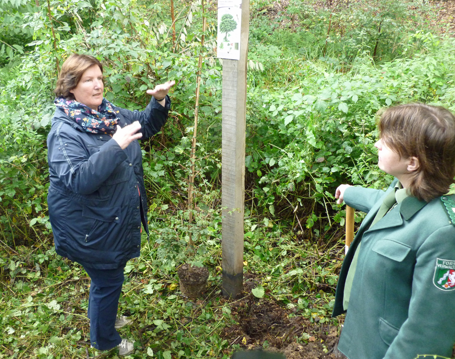 Als Baum des Jahres 2015 neu gepflanzt wurde ein Feldahorn, lateinisch Acer campestre, früher auch Maßholder genannt. Stadtförsterin Petra Trompeter, die auch Naturschutzwartin des SGV Neheim ist, berichtete der wissbegierigen Bürgermeisterin, dass sich dieser Baum am Gehölzrand besonders wohl fühlt und dass sein Laub gerne von Kühen verspeist wird. Früher hätten auch die Menschen die Blätter geerntet und wie Sauerkraut zubereitet. Der SGV-Vorsitzende Helmutheinz Welke richtete den Blick auch in die Zukunft: „Da auf dem Gelände noch Platz ist, können wir die Baumpflanzungen an dieser Stelle noch fortführen und damit den Weg der Jahresbäume in den nächsten Jahren kontinuierlich erweitern.“