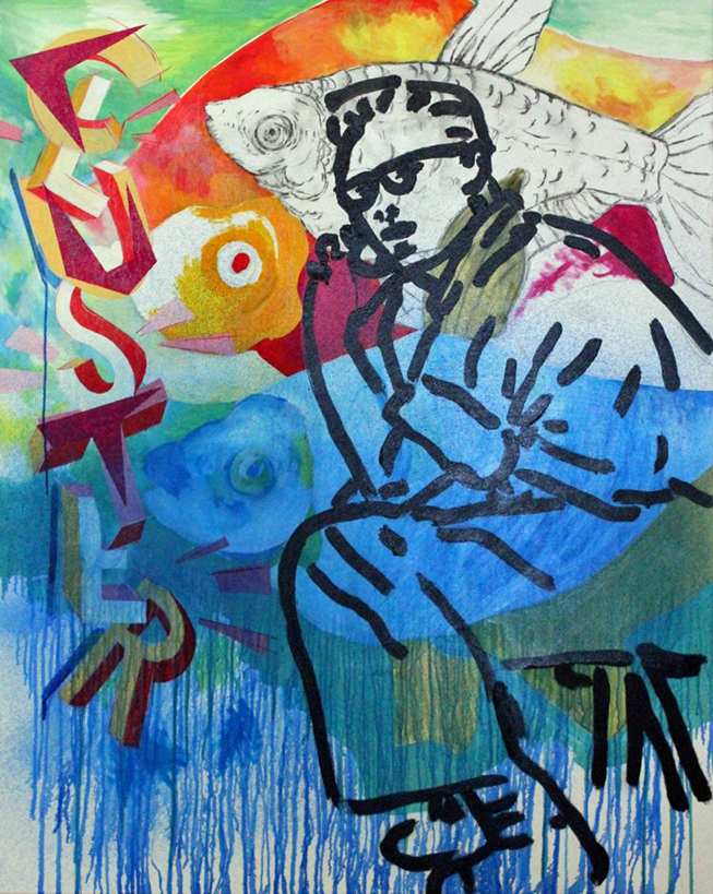 Seit September 2012 arbeitet Hieronymus an der neuen Serie, bei der Schriftzüge collageartig auf Bildfragmente stoßen, so dass Farben spritzen und fließen. Dabei ist das Durchbuchstabieren des Alphabets mit Bildern Programm: Der Neheimer Künstler verlässt die eher düsteren Enkaustikarbeiten der vergangenen Jahre und wendet sich dem poppig Bunten zu. Er hinterfragt mit gemalten Zitaten aus der Populärkultur unsere Wahrnehmungsweisen in einer modernen Welt, die von schnelllebigen Reizen, Massenmedien und digitalen Pop-Up Fenstern diktiert wird.