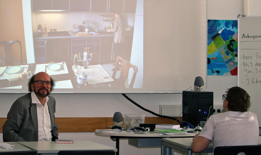 Zu interpretieren galt es auch die Lesung der bosnisch-muslimischen Schriftstellerin, Safeta Obhodjas. Ihrer Geschichte “Lange Schatten unserer Mütter” folgte eine doch tiefgründige Diskussionsrunde. Dr. Wulf Noll entführte die Schüler/innen indes anhand digitaler Fotos und zahlreichen Erzählungen und Erfahrungsberichten in die japanische und chinesische Welt. Ihm fiel das große Interesse der Jugendlichen auf, die sehr viele Fragen zum Leben in Japan oder China stellten.