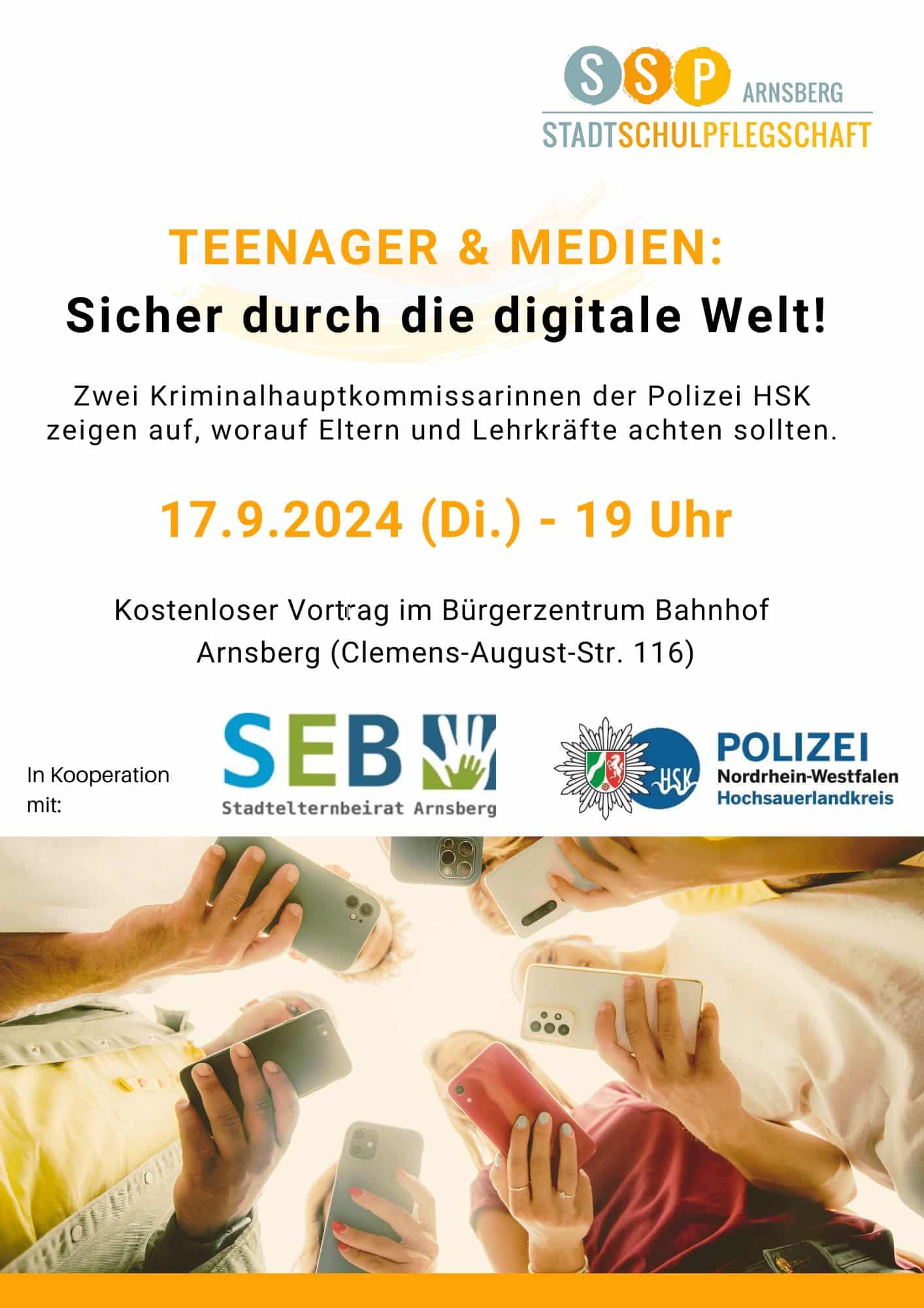Stadtschulpflegschaft Arnsberg lädt zum Vortrag: „Teenager & Medien: Sicher durch die digitale Welt!“