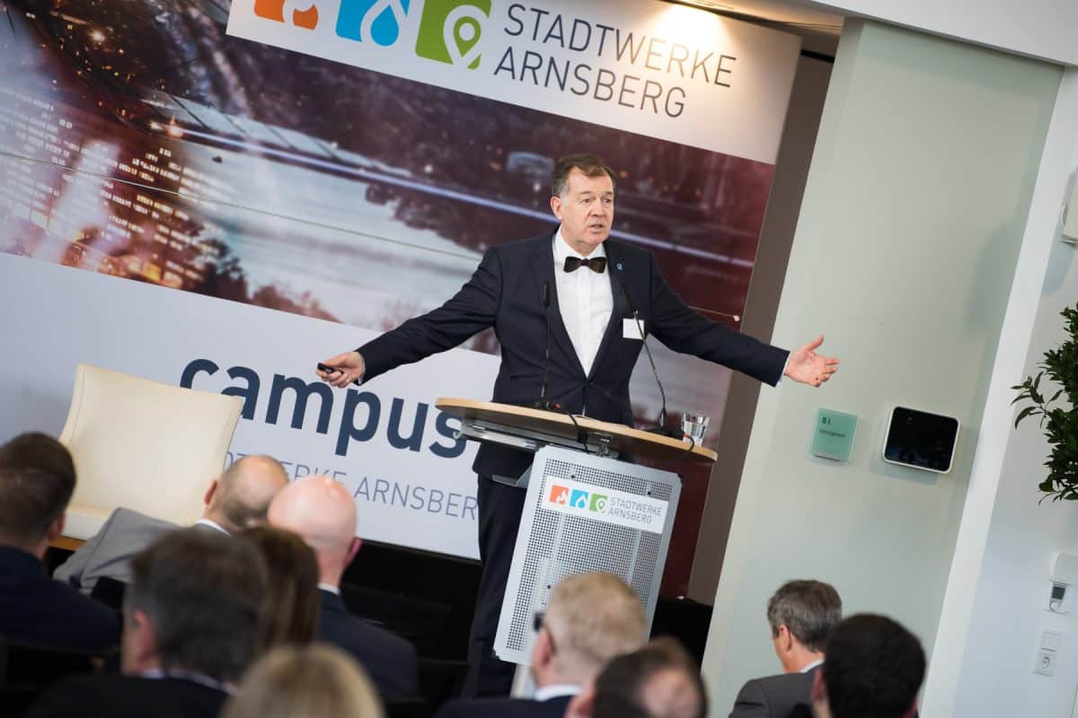 Es schloss sich dann der Vorsitzende der Atlantikbrücke, Friedrich Merz, in einem Vortrag an. Der startet zunächst einen Vergleich, wie schnell die Welt geworden ist. Kaiser Wilhelm II. habe das Auto seinerzeit für eine vorübergehende Erscheinung gehalten. Viele Generationen hätten Zeit gehabt, sich auf neue Entwicklungen einzustellen. „Um 100 Millionen Menschen an das analoge Telefon zu gewöhnen hat es 70 Jahre gedauert“. Bei der Einführung von Smartphones sei diese Zahl bereits nach drei Jahren erreicht worden. Bei „Pokemon Go“ habe es dann schließlich nur noch zwei Wochen gedauert. „Wir haben keine Zeit mehr zu entscheiden, ob wir bei der Digitalisierung mitzumachen“, macht der WEPA-Aufsichtsratsvorsitzende deutlich. Dem Thema „Brexit“ müsse nach Ansicht des Topmanagers Merz „mit dem nötigen Ernst“ begegnet werden. „Der beste Brexit ist, wenn es ihn erst gar nicht gibt“. Dafür gibt es lauten Applaus.