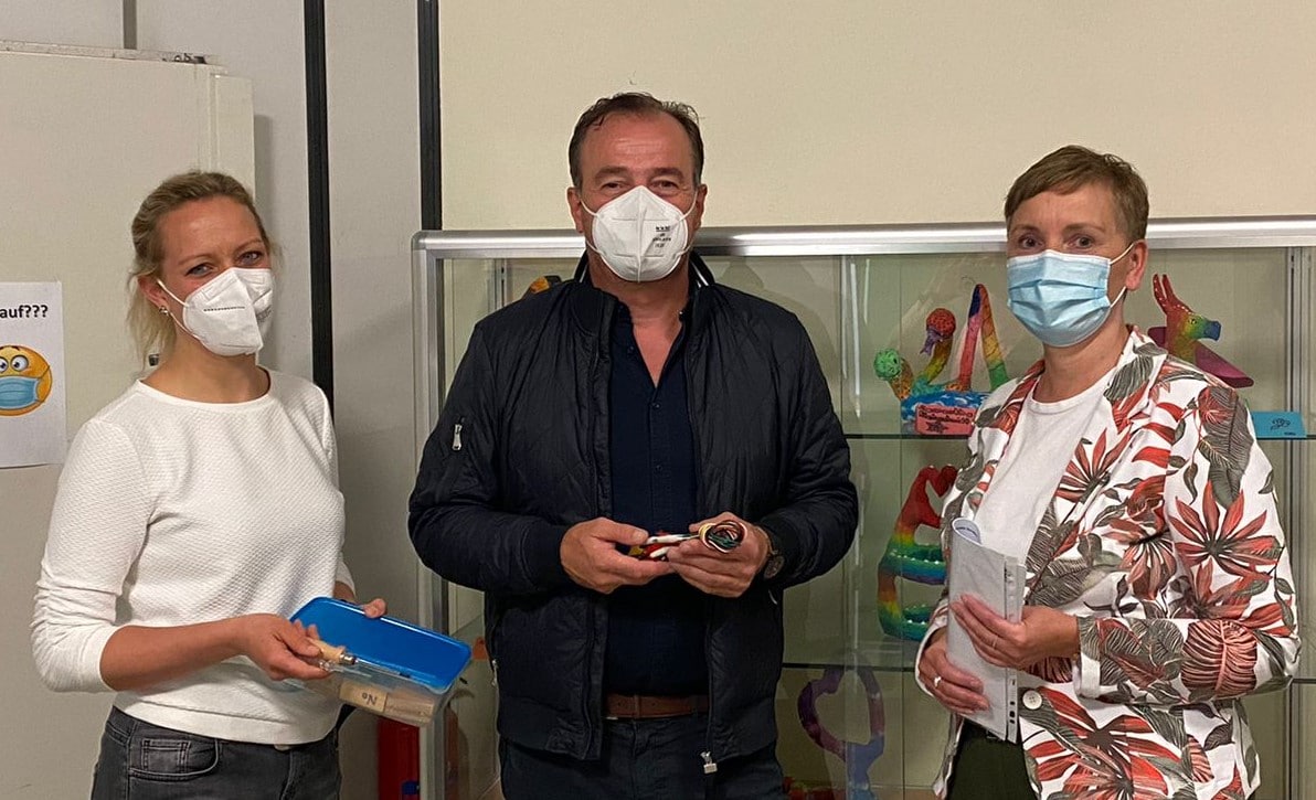 Mit Handy und Computer können alle Kinder perfekt umgehen. Was aber steckt dahinter und was sind die Grundlagen für unsere digitale Welt? Genau diese Grundlagen möchte Frau Noll praxisnah vermitteln. Und zwar nicht mit fertig gekauften Materialien. Vielmehr sind die Kinder gefordert, den Baukasten aus Holzklötzchen, Schrauben, Drähten und diversen Schaltungen selbst zu fertigen. Damit fordert und fördert die Lehrerin bei den Kindern gleichzeitig handwerkliches Basteln und das Verständnis für die Grundlagen elektrischer Leitungen. Den Förderverein des Gymnasiums hat diese Idee und das persönliche Engagement der Pädagogin so beeindruckt, dass er den kompletten Baukasten – wie bereits im vergangenen Jahr – auch für die aktuellen Fünftklässler finanziert.