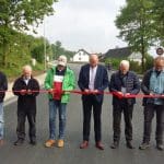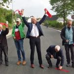 In Vertretung des verhinderten Stemeler Ortsvorstehers Christoph Schulte richtete auch Ortsheimatpfleger Hubert Wienecke einige Worte an die zahlreich erschienenen Stemel Bürger. Er erinnerte daran, dass die Stemeler schon in den 1970-er Jahren die Ortsdurchfahrt kritisiert hätten und in den 1980-er Jahren vehement zumindest für eine Fußgängerampel demonstriert hätten. Jetzt finde er die Straße sehr gelungen, sagte Wienecke, der auch dem Bürgermeister dankte, dass er dafür gesorgt habe, dass das alles funktioniere. „Vorsichtshalber“, so der Ortsheimatpfleger, habe er auch ein Messer in der Tasche, wenn das gleich mit den Scheren nicht funktioniere.