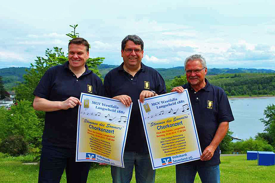 Langscheid. Der MGV Langscheid gestaltet am Sonntag, 22. Juni um 17 Uhr mit vier weiteren Chören und dem Langscheider Musikverein das sommerliche Konzert und lädt die Bevölkerung Langscheids und der Umgebung dazu recht herzlich ein. Die Vorbereitungen für die zweite Auflage von „Stimmen des Sommers“ sind soweit abgeschlossen. Die Veranstalter setzen auf gute Witterung, denn das Chorkonzert findet am Haus des Gastes im Freien statt – nur bei schlechtem Wetter geht’s in der Schützenhalle.