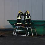 Die angeforderten Spezialkräfte der Feuerwehr nahmen nach ihrem Eintreffen weitere Messungen vor, schätzen die Explosionsgefahr ab und sperrten den Gefahrenbereich ab. Nachdem die Wehrleute die Kühlung der Flasche einige Zeit lang fortgesetzt hatten, wurde ein Container mit Wasser gefüllt und die Acetylen-Flasche unter ständiger Kontrolle ihrer Temperatur in das kühle Wasserbad gebracht. Anschließend wurde der Container auf einem anliegenden Platz in sicherer Entfernung deponiert und dort gesichert. Das betroffene Unternehmen bestellte eine Entsorgungs-Firma zum späteren Abtransport der Acetylen-Flasche.