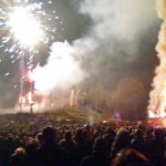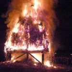 Klaus Kayser entzündete zwölf meter hohen Fichtenholzstapel