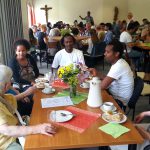 Hach­en. Wie­der bis auf den letz­ten Platz gefüllt war das Pfarr­heim Bern­hard-Frick-Haus in Hach­en, wo die Hel­fe­rin­nen und Hel­fer des Bür­ger­netz­wer­kes Flücht­lings­hil­fe zum zwei­ten Mal zum Café Inter­na­tio­nal ein­ge­la­den hat­ten. Ein viel­fäl­ti­ges und inter­na­tio­na­les Stim­men­ge­wirr tön­te durch die Räu­me und über das Außen­ge­län­de des Pfarrheims.