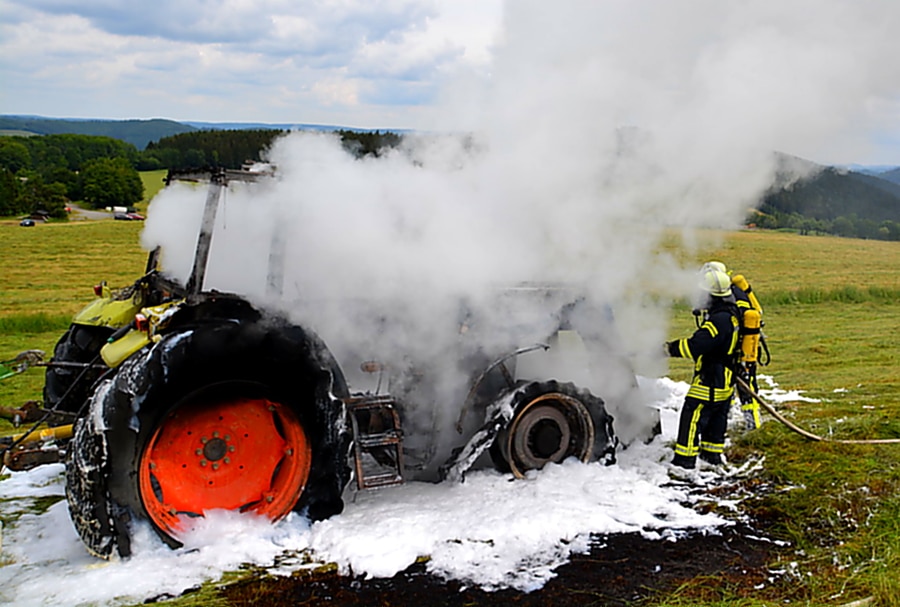 In der Folge brannte der Trecker komplett aus. Da die Wasserversorgung auf dem abgelegenen Feld schwierig war, wurden mehrere Löschfahrzeuge mit alarmiert. Nachdem der Brand durch Einsatzkräfte gelöscht war, wurde die Einsatzstelle an die Polizei übergeben. Diese hat entsprechende Ermittlungen aufgenommen.