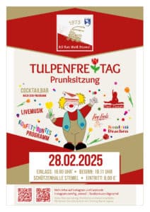 Der Einlass beginnt um 18:00 Uhr, der Eintritt kostet 8,00 € pro Person. Ab 19:11 Uhr erwartet die Gäste ein konfettibuntes Programm mit Tänzen, Sketchen und humorvollen Geschichten aus der Bütt.