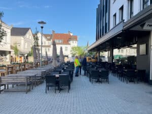 Am Bexleyplatz in der Neheimer Oberstadt zeigt sich inzwischen das Potential der Straßenerneuerung: Am oberen Ende der Stembergstraße ist ein Teil der Bürgersteige fertig gestellt, wobei in Höhe der Eisdiele ein breiter Boulevard für Passanten entstanden ist. Hier werden künftig noch weitere gesicherte Abstellplätze für Fahrräder direkt an der Neheimer Fußgängerzone entstehen. Schon jetzt wird die sanierte Fläche zum Verweilen gerne genutzt. In enger Abstimmung der Stadt Arnsberg mit den beauftragten Baufirmen wird auf die stetige fußläufige Erreichbarkeit von Handel und Gastronomie geachtet. Beidseitig besteht in den genannten Baustellenbereichen die Möglichkeit, die Baustellen zu passieren, um zu den gewünschten Geschäften an und in der Neheimer Fußgängerzone zu gelangen. Die zwei großen Baufirmen, die in Neheim im Auftrag der Stadt Arnsberg tätig sind, stellen zur Erledigung der Aufgaben und Projekte umfangreich Fachpersonal bereit. Um auch hier Zeit zu sparen, sind die Versorger mit der Erneuerung von Strom- und Gasleitungen u.a. eng in den Bauablauf integriert.
