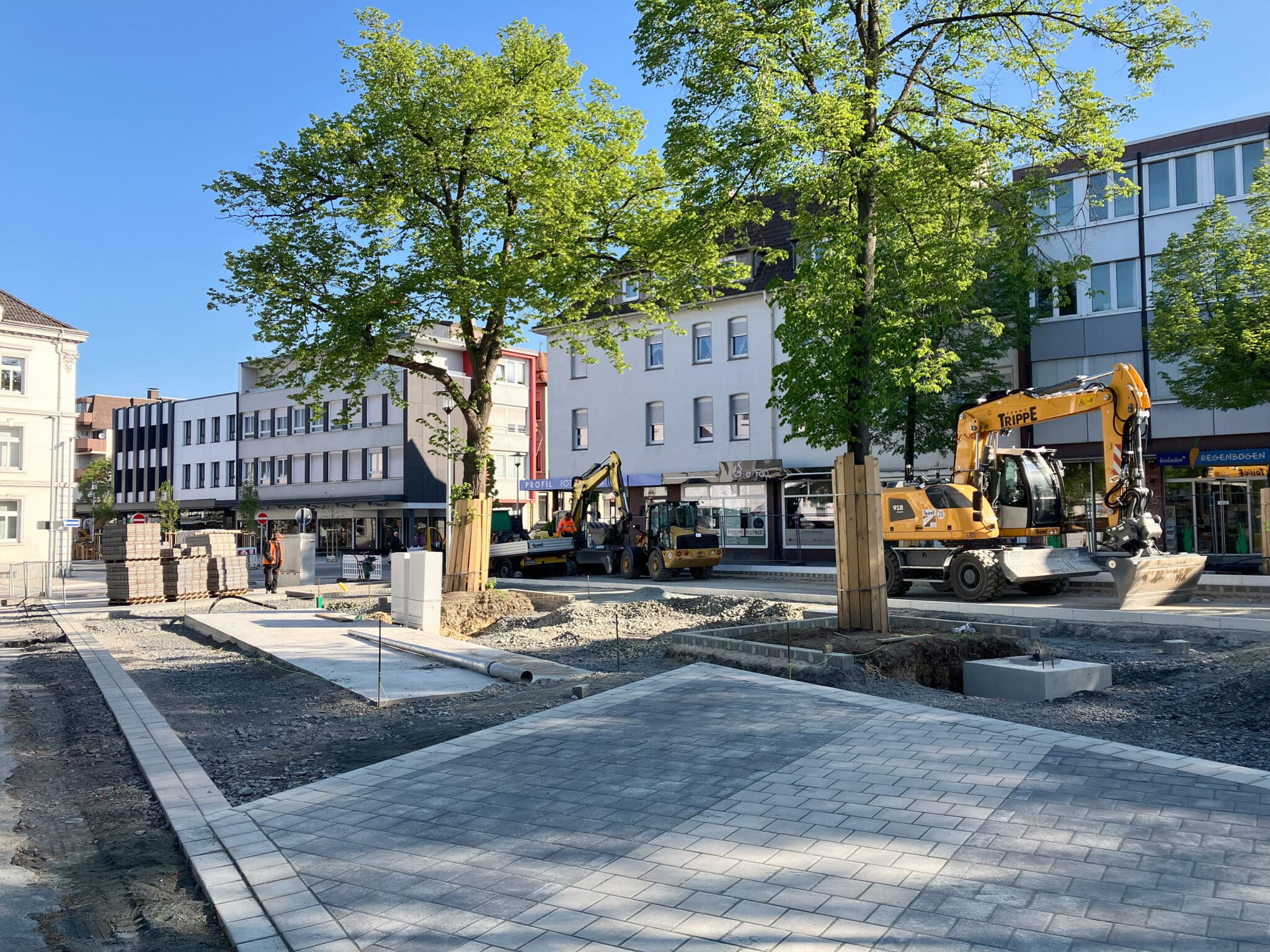 Die Arbeiten auf dem Engelbertplatz gehen derweil engagiert weiter: Das neue Eingangsportal für Neheim nimmt langsam Gestalt an – die Arbeiten werden voraussichtlich im August fertig gestellt. Für die neue Mobilstation in der Neheimer City wurde bereits das Fundament gegossen, voraussichtlich noch im Mai wird der Rohbau für die moderne Fahrrad-Abstellanlage aufgebaut. Damit schafft die Stadt Arnsberg nachhaltige Anreize, die die Nutzung von Fahrrädern unterstützen. Mit dem Abschluss der Arbeiten auf dem Engelbertplatz stehen dann auch wieder Stellflächen für den motorisierten Verkehr zu Verfügung.