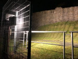 Nun hoffen alle Beteiligten, dass die neuen Leuchten länger Bestand haben. Zahlreiche Leuchten an der Ruine sind nicht zufällig kaputt gegangen, sondern wurden mutwillig zerstört. Jetzt werden die neuen Leuchten durch eine Gitter-Komplett-Käfig etwas besser geschützt. Für den Betrieb der Beleuchtung gibt es auch einen vereinbarten Zeitrahmen: Die Beleuchtung wird mit Beginn der Dämmerung eingeschaltet und werktags zwischen 23 und 5 Uhr wieder ausgeschaltet. Am Wochenende leuchtet das Schloss sogar bis 24 Uhr und wird dann bis fünf Uhr ausgeschaltet. Zur Zeitumstellung an diesem Wochenende dürften die Arnsberg sogar noch eine Stunde Zuschlag bekommen – hoffentlich spielt auch das Wetter mit.