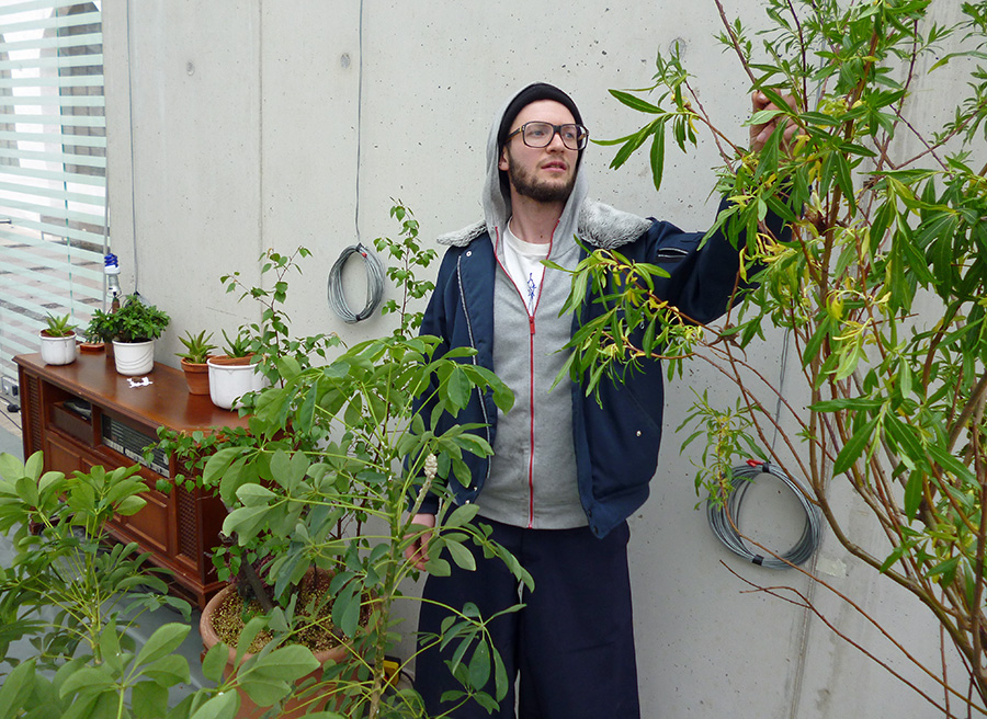 Die Installation von Andreas Greiner wird für die Besucher in den kommenden zwei Monaten nur durch die rückwärtigen großen klaren Scheiben zu betrachten sein. „Wie in einem Gewächshaus oder Terrarium,“ so Katrin Ueberholz. Der Künstler selbst bewohnt derzeit für eine Woche das Lichthaus, um das Werden seiner Installation zu gestalten und zu verfolgen, anschließend aber den Ureinwohnern die Bühne zu überlassen. Er will den Frühling willkommen heißen und sich an allem erfreuen, was kreucht und fleucht. Marienkäfer und Schmetterlingslarven, aus denen bereits zwei Nachtpfauenaugen geschlüpft sind, hat der Künstler selbst mitgebracht, Fliegen lockt er mit Katzenfutter an und auch fünf Spinnen und ein Silberfischchen hat er bereits entdeckt. Aus der Nachbarschaft möchte er gerne andere Nachtpfauenaugen anlocken. Für diese ist in einer zufällig gerade kaputten Scheibe eine Schleuse eingebaut worden und ein Kronleuchter sendet ultraviolettes Licht aus. Sobald ein Falter die Lichtschranke durchfliegt, ertönt aus einer altertümlichen Musiktruhe Barockmusik. Andreas Greiner hat auch einen transportablen Kleiderschrank mitgebracht und bittet um Kleiderspenden, die mit Motten befallen sind. Auch möglichst große Zimmerpflanzen werden noch gesucht – gerne von Blattläusen, um die anderen Insekten im Glashaus zu ernähren. Diese Spenden können Freitag oder Samstag vor dem Glashaus abgestellt werden.