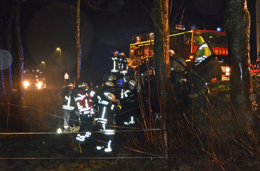 Bei­de Unfall­be­tei­lig­ten wur­den in umlie­gen­de Kran­ken­häu­ser gebracht. Das Fahr­zeug wur­de total beschä­digt und muss­te von der Unfall­stel­le abge­schleppt wer­den. Die Feu­er­wehr stell­te wäh­rend der Ret­tungs­maß­nah­men und der anschlie­ßen­den Fahr­zeug­ber­gung den Brand­schutz sicher. Die Poli­zei hat zum Unfall­her­gang die Ermitt­lun­gen auf­ge­nom­men. Die Feu­er­wehr war mit 25 Ein­satz­kräf­ten rund zwei Stun­den im Einsatz.