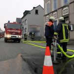 Da zunächst unklar war, ob sich noch Personen in der stark verrauchten Wohnung aufhielten, rüsteten sich die Wehrleute bereits auf der Anfahrt zum Einsatzort mit schwerem Atemschutz aus. An der Einsatzstelle wurde parallel zur Erkundung umgehend die Wasserversorgung sichergestellt. Der eingesetzte Atemschutztrupp konnte nun mit schwerem Gerät die Dachgeschosswohnung erkunden und dem Einsatzleiter schnell Entwarnung geben: Es befand sich keine Person in der betroffenen Wohnung, und der Grund der starken Verrauchung war vergessenes Essen auf dem Herd. Nachdem die Wohnung von den Wehrleuten auf etwaige verbliebene Brandnester kontrolliert worden war, konnte sie mit einem Hochleistungslüfter vom Rauch befreit werden.