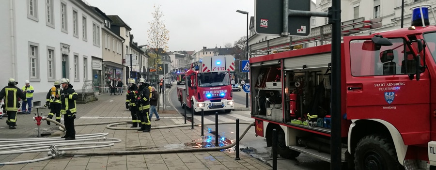 Arnsberg. Eine Verpuffung im Keller eines Wohn- und Geschäftshauses am Brückenplatz hat am Mittwoch morgen für ein Großaufgebot an Einsatzkräften von Feuerwehr, Rettungsdienst und Polizei gesorgt. Verletzt wurde niemand. Der Sachschaden unter anderem in einem Blumengeschäft ist groß.