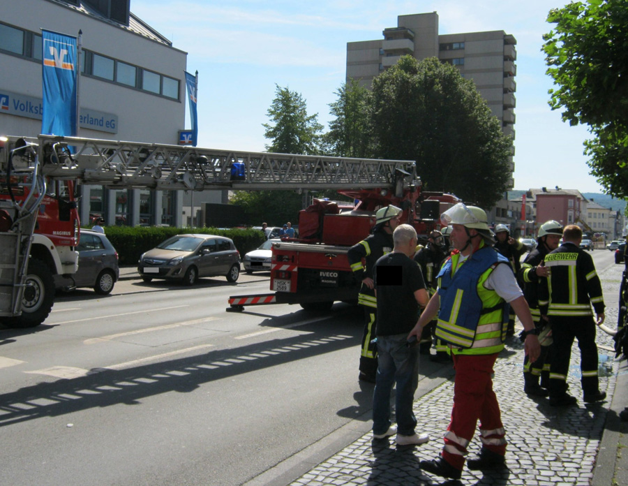 Arnsberg. Zu einem Wohnungsbrand in die Clemens-August-Straße wurden am Montag um 11.37 Uhr die Hauptwachen Arnsberg und Neheim sowie der Löschzug Arnsberg, die Löschgruppe Rumbeck, der Fernmeldedienst und der Rettungsdienst mit Notarzt alarmiert. Beim Eintreffen der ersten Einsatzkräfte drang starker Rauch aus dem zweiten Obergeschoss ins Freie. Die Bewohnerin der betroffenen Wohnung war zum Zeitpunkt des Brandes nicht anwesend. Die anderen Hausbewohner konnten, soweit sie denn zu dem Zeitpunkt in dem Gebäude waren, dieses unverletzt verlassen. Sofort ging ein Einsatztrupp unter Atemschutz in das Gebäude vor, um den Brandherd zu lokalisieren. Gleichzeitig wurde die Drehleiter in Stellung gebracht, um die Wohnung von außen zu kontrollieren.