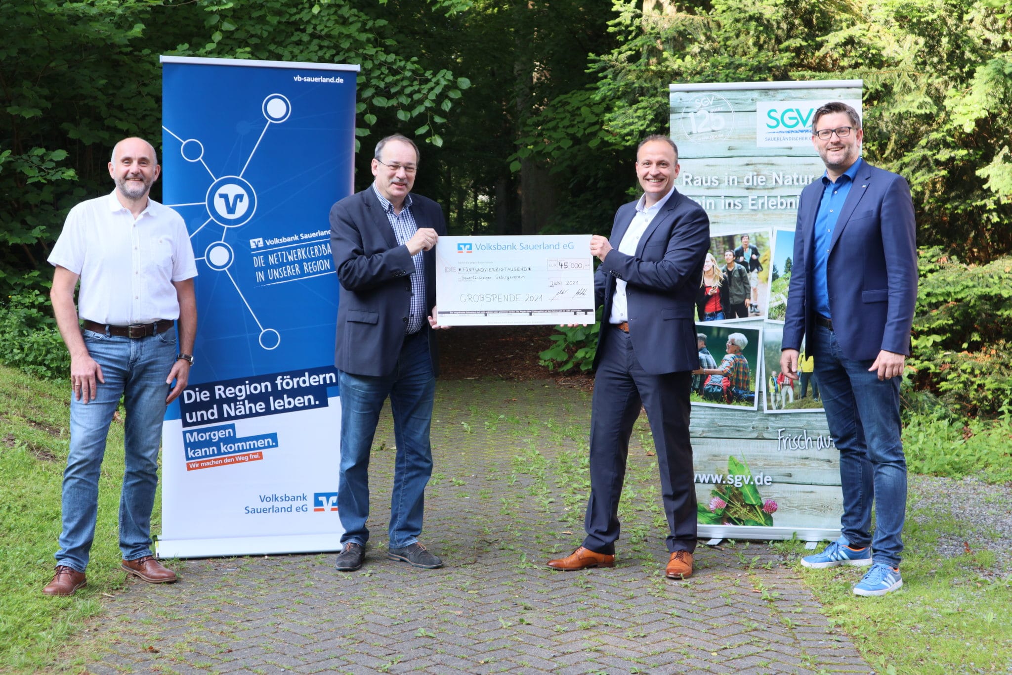 Die Volksbank Sauerland möchte mit der diesjährigen Großspendenaktion die tollen Beiträge der SGV-Abteilungen zum gesellschaftlichen Wohl würdigen. Wanderungen auf verschiedene Art und Weisen, Kennzeichnungen von Wanderwegen, Angebote für Kinder und Jugendliche, Vermietungen und Pflege der im Abteilungsbestand befindlichen Hütten und viele Dinge mehr werden über die SGV-Abteilungen angeboten.
