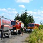 Umgehend wurden vom diensthabenden Einsatzführungsdienst die Löschgruppen aus Stemel, Hachen Langscheid und Westenfeld, der gesamte Löschzug aus der Kernstadt sowie der Löschzug Wasserversorgung der Feuerwehr Sundern nachgefordert. Erneut erwies sich die Drohne der Feuerwehr Sundern als sehr hilfreich bei der Erkundung im Gelände. Der Großtankwagen aus Sundern wurde vor Ort als Löschwasserpuffer eingesetzt. Somit konnte eine ausreichende Wasserversorgung hergestellt werden. Der Großtankwagen wurde durch den Einsatz von mehreren Löschfahrzeugen im Pendelverkehr permanent wieder aufgefüllt. Somit war eine Löschwasserversorgung auf Dauer sichergestellt.