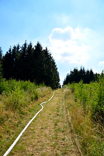 Umgehend wurden vom diensthabenden Einsatzführungsdienst die Löschgruppen aus Stemel, Hachen Langscheid und Westenfeld, der gesamte Löschzug aus der Kernstadt sowie der Löschzug Wasserversorgung der Feuerwehr Sundern nachgefordert. Erneut erwies sich die Drohne der Feuerwehr Sundern als sehr hilfreich bei der Erkundung im Gelände. Der Großtankwagen aus Sundern wurde vor Ort als Löschwasserpuffer eingesetzt. Somit konnte eine ausreichende Wasserversorgung hergestellt werden. Der Großtankwagen wurde durch den Einsatz von mehreren Löschfahrzeugen im Pendelverkehr permanent wieder aufgefüllt. Somit war eine Löschwasserversorgung auf Dauer sichergestellt.