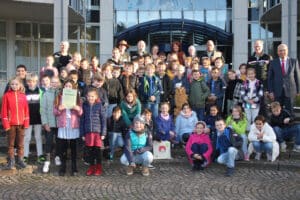 In einem naturkundlichen Wettkampf erspielten sich die drei Gewinnerklassen der diesjährigen Waldjugendspiele mit viel Spaß und Wissen die drei ausgelobten Hauptpreise. Diese überreichte Landrat Dr. Schneider den Schülerinnen und Schülern bei der Abschlussfeier der Waldjugendspiele 2022 im Kreishaus Meschede. Die Schülerinnen und Schüler der Klasse 4b der Johannesschule Arnsberg werden eine „Walderlebnistour mit einem Ranger“ unternehmen. Sie werden zu „Ranger-Kids“ ausgebildet und erhalten ein „Ranger-Kids-Diplom“. Die Klasse 4a der St. Engelbertschule Brilon wird den Wildwaldes Voßwinkel besuchen und sich dort ein Thema für eine naturkundliche Führung aussuchen. Zu den Bruchhauser Steinen sowie rauf auf den Feldstein geht es für die Klasse 4b der Rodentelgenschule Arnsberg-Bruchhausen. Der Landrat dankte insbesondere den Sponsoren vom Wildwald Voßwinkel, von der Stiftung Bruchhauser Steine sowie dem Regionalforstamt Oberes Sauerland für die Stiftung der Hauptpreise.