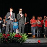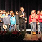 Mehrere Solostücke ergänzten das traditionelle Konzert. Fehlerfrei erklang die sanfte Version des Jingle Bells für zwei Gitarren vom Fünftklässler Gian Woizick, der auf der Gitarre von Herrn Decker begleitet wurde. Celina Supas Gesang „Not about angels“ und Katharina Kappens “Only hope” erklangen hell und markant durch den Saal. Einen besonderen Genuss bildete auch in diesem Jahr das Stück „Expromt“, auf dem Cello vorgetragen vom Sechstklässler Anton Weimar. Der Bogen hüpfte rasant nur so über die Saiten. Virtuos begleitet wurde Anton auf dem Klavier von seinem Vater Gerd Weimar. Ein weiteres Highlight des Abends bildete die Bühnendarbietung der beiden Siebtklässler Leon Fehr und Kerry Waldhauer mit Goethes Zauberlehrling. Erfreulicherweise musste der Saal nicht aufgrund von Überflutung durch Eingreifen des Hexenmeisters geräumt werden. Die Erkenntnis, dass gerade Altes und Bewährtes tragfähig ist und das junge, spontane Element manchmal sogar für mehr Verwirrung sorgen kann, wurde mit dieser Ballade des Altmeisters Goethe allen transparent gemacht.