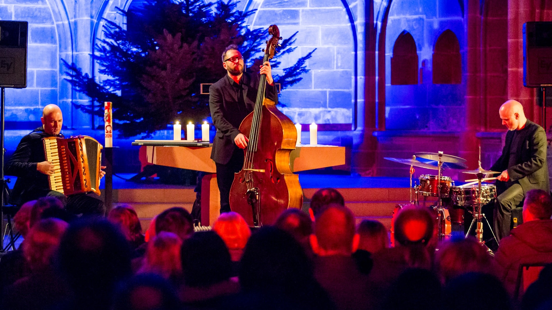 Engelrausch spielen in der Besetzung Martin Wagner (Akkordeon), Hanns Höhn (Kontrabass) und Andreas Neubauer (Schlagzeug).