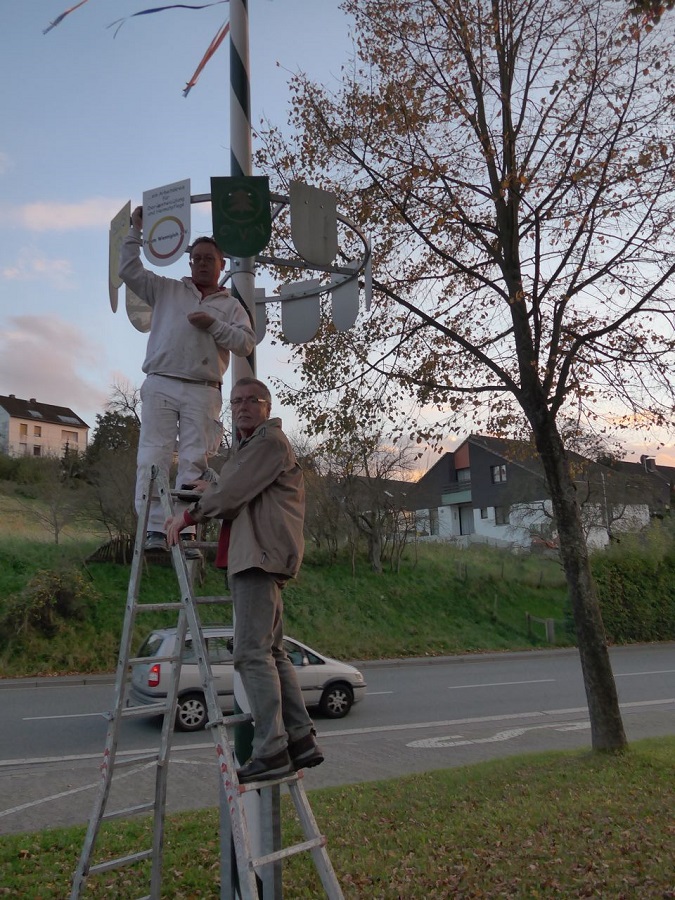 Im Oktober bereits hatten Forums-Vorsitzender Hans-Joachim Böhmer und sein Stellvertreter Uli Recha an dem Maibaum in der Dorfmitte ein Signet des Forum Wennigloh angebracht, das dort nun zusammen mit den Emblemen der übrigen Vereine von einem aktiven gesellschaftlichen Leben im Dorf kündet. Außerdem brachten sie an mehreren Ruhebänken an den Hauptwanderwegen in Wennigloh Notfallschilder an, die es ortsunkundigen Wanderern und Spaziergängern erlauben, in einem Notfall zielgerichtet Hilfe zu rufen. Die auf den Notfallschildern angegebenen Koordinaten sind in der Leitstelle für Feuerschutz und Rettungsdienst des Hochsauerlandkreises in Meschede hinterlegt und können den jeweiligen Standorten der Bänke genau zugeordnet werden. So kann die Hilfe unmittelbar zu dem Ort des Notfalls entsandt werden. Neben dem Ruhrtalradweg ist Wennigloh der erste Arnsberger Stadtteil, der diese Sicherheitsmaßnahme anbietet.