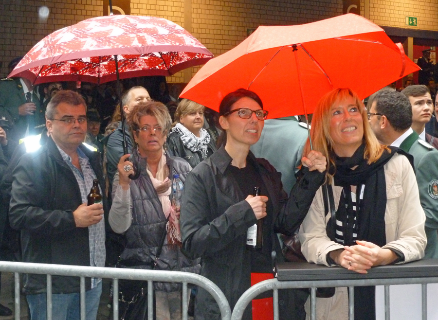 23 von 26 möglichen Majestäten hatten sich zum ersten stadtweiten Vogelschießen eingefunden, darunter auch zwei Königinnen aus Bachum und vom Mühlenberg. Fast eine Stunde war das Schießen auf der Freilichtbühne alt, als die Krähe im Kugelfang die ersten male spürbar zuckte. Bei einsetzendem Regen wurde es für die eifrigen Kontrahenten zusehends ungemütlich, als Werner Kosik um 17.19 Uhr im 141. Schuss der entscheidende Treffer gelang.