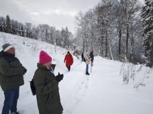 Sundern. Insgesamt 20 Teilnehmerinnen und Teilnehmer konnte Andreas Bronheim, der stellvertretende Vorsitzende des SPD-Ortsvereins Sundern, zur traditionellen Winterwanderung mit anschließendem Reibekuchen-Essen am letzten Samstag begrüßen. Bei strahlendem Sonnenschein ging es durch die zauberhafte Winterlandschaft an der Streu oberhalb von Altenhellefeld.
