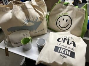 Die heftzwecke ist ein Grafik- Druck- und Lettershop, in dem rund 27 Mitarbeiterinnen und Mitarbeiter in Voll- und Teilzeit tätig sind. Hier werden unterschiedlichste Aufträge bearbeitet, darunter Textil- und Tassendruck, Werbe- und Infoanschreiben, Flyer, Giveaways und vieles mehr. Dank einer professionellen Grafikabteilung sowie moderner Druck- und Frankiermaschinen bietet die heftzwecke eine breite Palette an Produktionsmöglichkeiten. Besucherinnen und Besucher der Winterwelt im Alten Feld haben die Gelegenheit, vor Ort kreativ gestaltete Taschen, Karten, Tassen und T‑Shirts aus der heftzwecke zu erwerben – besondere Geschenkideen, die die Vielfalt und Kreativität der Werkstatt zeigen.
